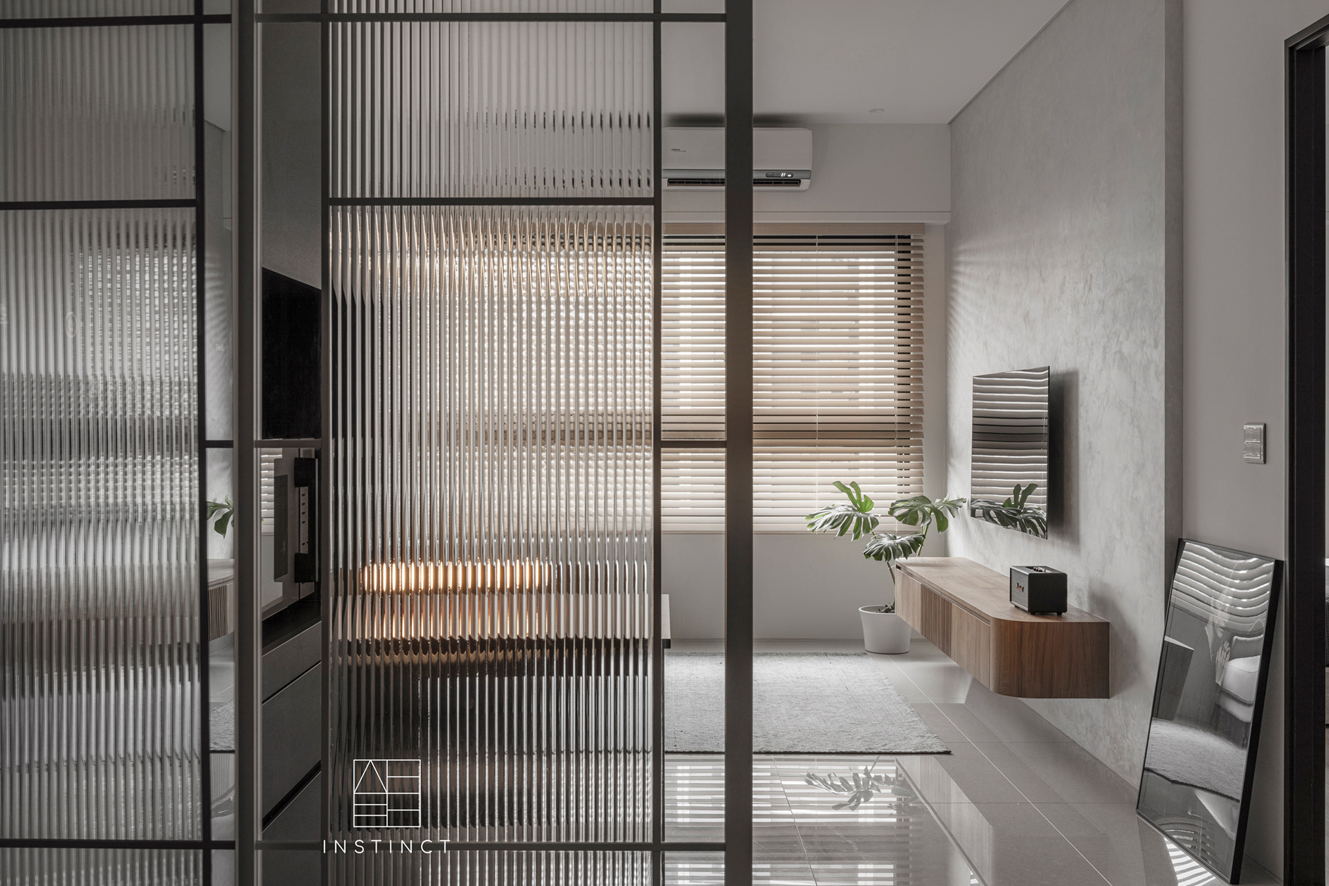 一入門是低調與靜謐純白展現優雅質感,適當家俱、條紋玻璃區隔視覺層次,增加空間自由度和多樣性。期待已久的專屬工作桌讓業主褪下白天分析師職場的戲劇化張力,擁有獨立專注的工作區域。灰粉色系、霧黑金屬打造個性化空間,柔軟細膩同時映襯著自信魅力。